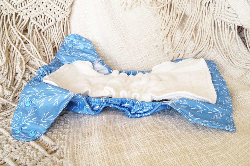 TIPP: ziehen Sie jeweils 2 Überhosen im Wechsel an, sodaß die 2. Überhose am Wickeltisch trocknet. Bereiten Sie die frische Windel vor dem Wickeln vor, kletten Sie die Einlage also in Ruhe vorab ein.